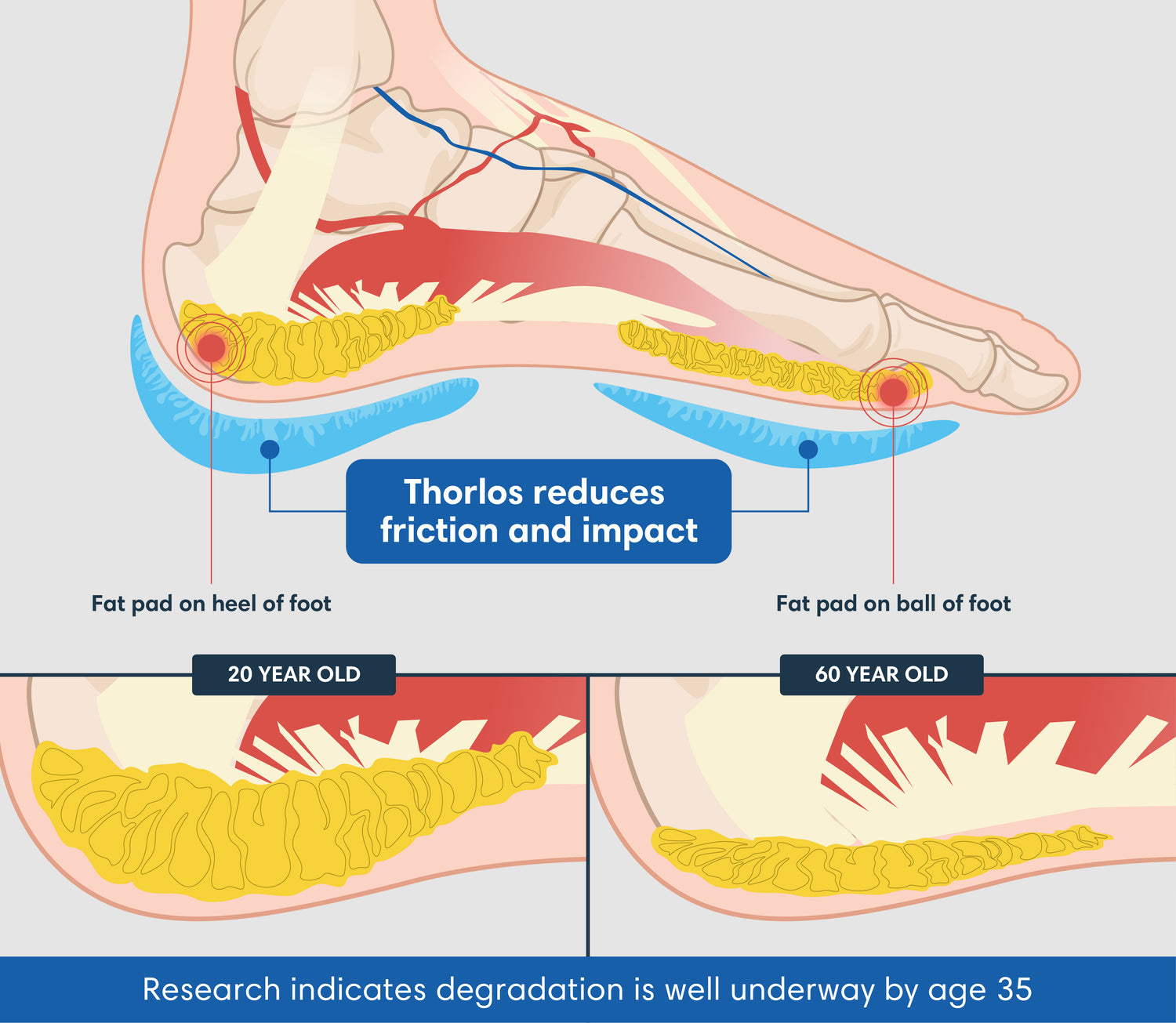 Thorlo are the only socks in the world clinically proven* to reduce pain, blisters, moisture and pressure while protecting the fat pads on your feet.