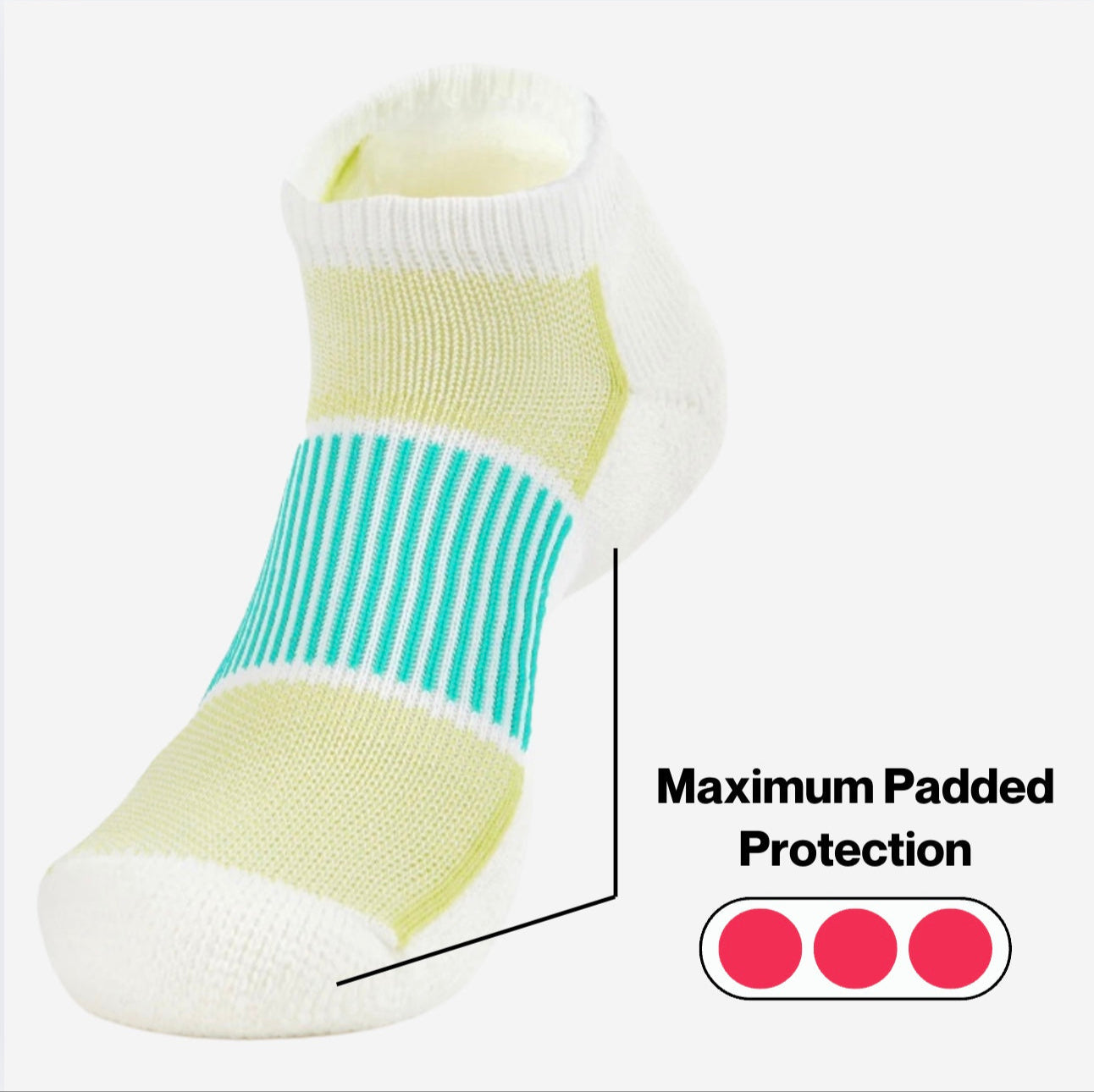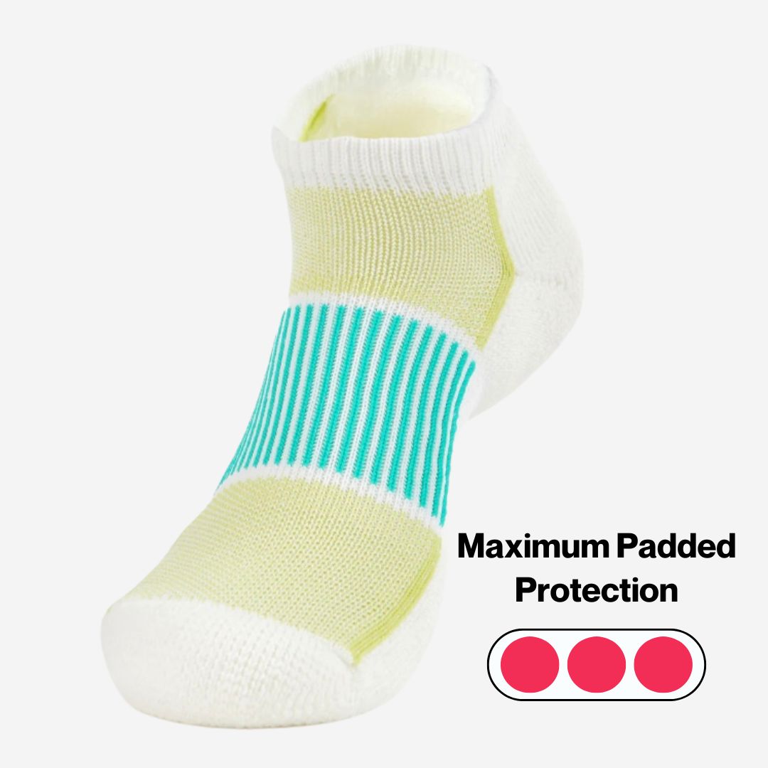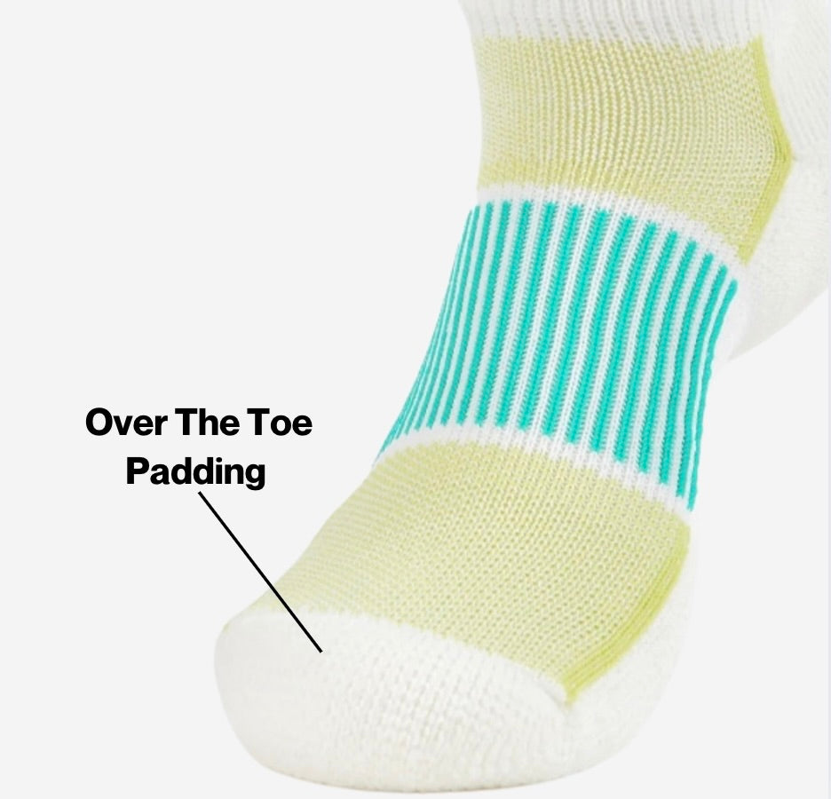 Provides the highest level of padding among our running socks, including extra padding in the ball and heel, plus minimal padding across the arch to protect your entire foot from impact and friction that causes blisters.