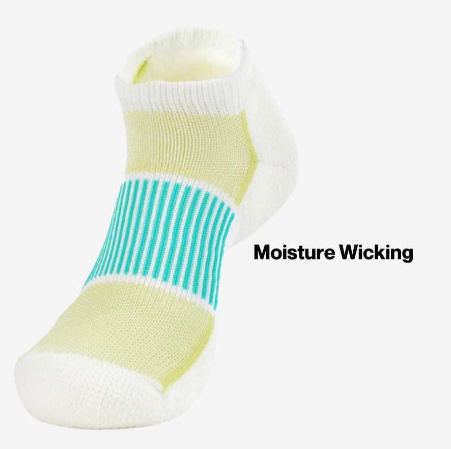 They move sweat away from your feet toward the surface of the sock, so moisture can pass through your shoe, helping keep feet dry and comfortable.