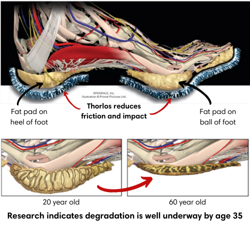 That's why Thorlos are the only socks clinically proven* to reduce pain, blisters, moisture and pressure while protecting your fat pads.